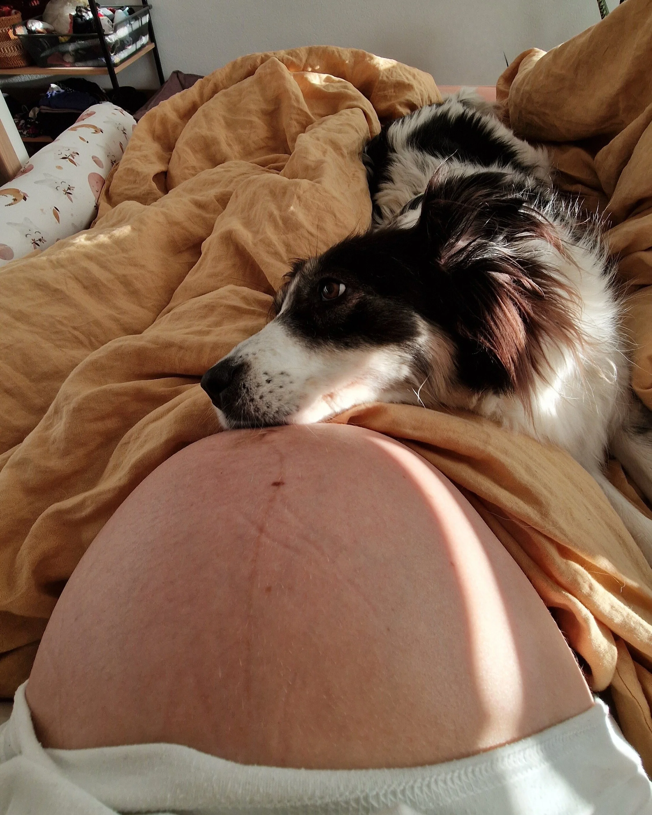 Nach den ersten drei Monaten, in denen ich ziemlich schlapp und energielos war, war ich im zweiten Trimester kaum mehr zu bremsen! Diese antreibende Energie hielt bis kurz vor der Geburt an. Dank unserer wunderbaren Doula Angela Stocker, wurde ich gut mit spannenden Büchern, Insights und Instagram-Profilen versorgt, sodass ich immer mehr Einblicke in die Geburtshelfer-Bubble bekam. Am meisten Eindruck hinterliessen bei mir die Videos von Frauen, die ihre Babys im Stehen und lauthals brüllend oder im Vierfüsslerstand und ganz still bekommen haben. Die überwältigende Freude aller Beteiligten rührte mich oft zu Tränen. Das Wissen welches mir die vielen ausgewählten Bücher vermittelten, resonierte wahnsinnig mit mir. Meine positive Grundhaltung der Geburt gegenüber wurde so mit jedem Tag stärker, ebenso wie das Bewusstsein, dass das Wissen, wie dieses Kind auf die Welt kommt, dieses uralte Wissen tief in meinem Körper verankert ist. Meine “einzige” Aufgabe ist es, meinen Kopf zum Stillschweigen zu bringen. Diese Erkenntnis hat mich tief berührt und zugleich sehr traurig gemacht.